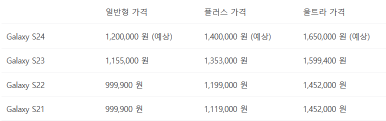 기본형이 120만원 /갤럭시 s24 플러스 145만 원/ 울트라 160만 원으로 예상된다.